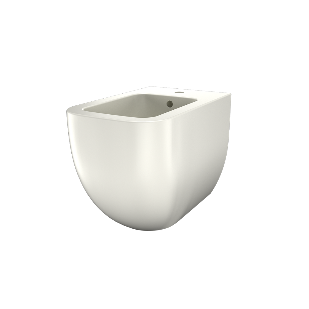The floor-standing bidet combines elegance and practicality through its soft, rounded design and high-quality sanitary ceramic construction. Its single-hole configuration with overflow and hidden fixing system ensures a clean, seamless appearance that enhances any modern bathroom space. With dimensions of 56 x 35.5 x 42 cm and a weight of 26 kg, it offers stability and comfort in everyday use. The bidet is available in a wide palette of refined surface finishes—White, Cream, Coffee, Magnesium, Sand, Green, Pink, Sky Blue, Graphite, Ice, and Beige—each treated with a special coating to preserve its color and aesthetic appeal over time. Perfectly balancing style and functionality, this piece is designed for long-lasting beauty and sophistication.